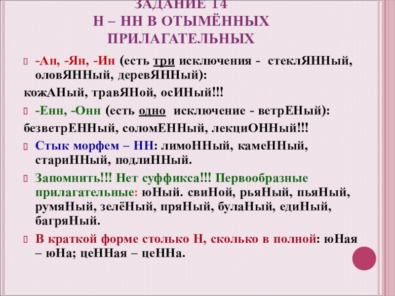 Н – НН В ОТЫМЁННЫХ ПРИЛАГАТЕЛЬНЫХ