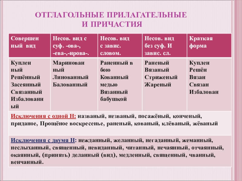 Слайд 8ОТГЛАГОЛЬНЫЕ ПРИЛАГАТЕЛЬНЫЕ