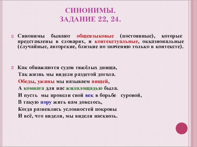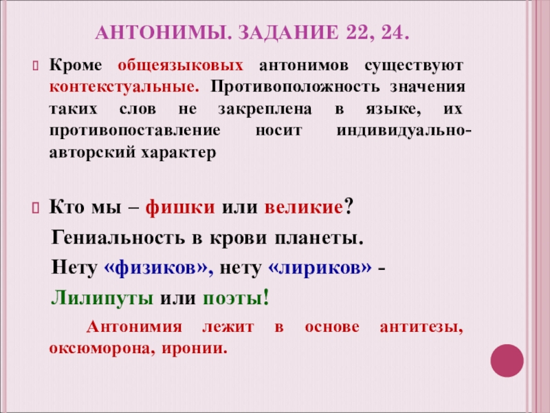 Слайд 13АНТОНИМЫ. ЗАДАНИЕ 22, 24.