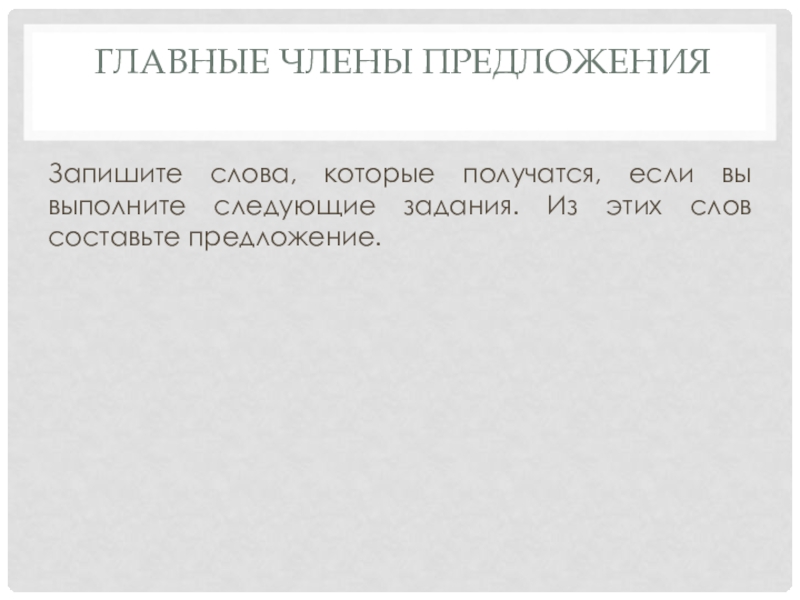 Главные члены предложения Запишите слова, которые получатся, если вы выполните следующие задания. Из этих слов составьте предложение.