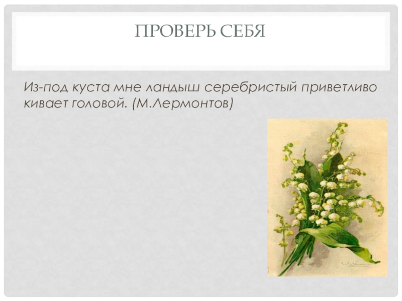 Проверь себя Из-под куста мне ландыш серебристый приветливо кивает головой. (М.Лермонтов)