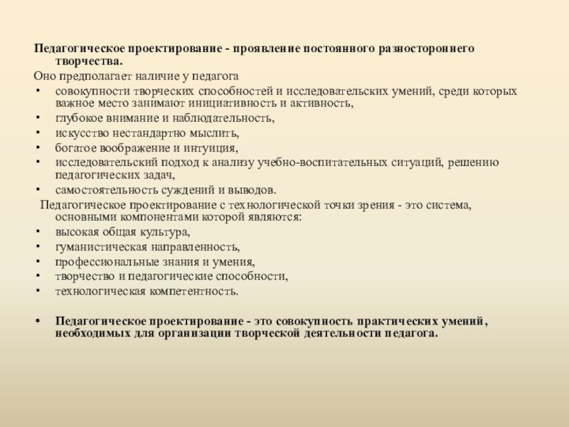 Слайд 9Педагогическое проектирование - проявление постоянного разностороннего творчества.