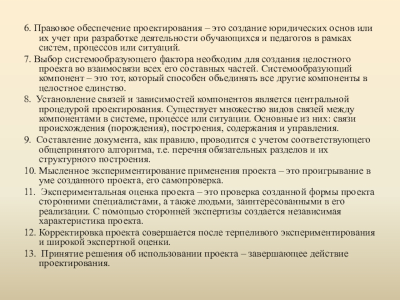 Слайд 66. Правовое обеспечение проектирования – это создание юридических основ или их
