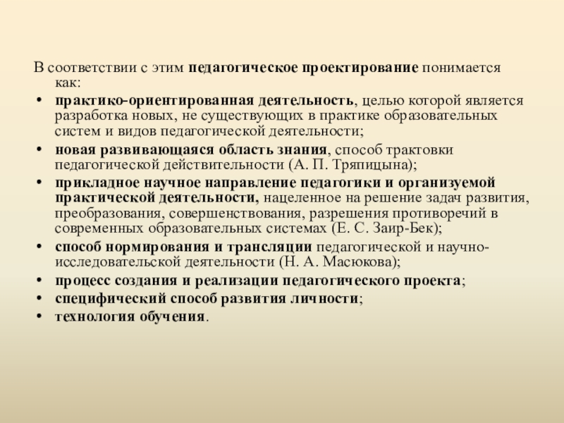 В соответствии с этим педагогическое проектирование понимается как: