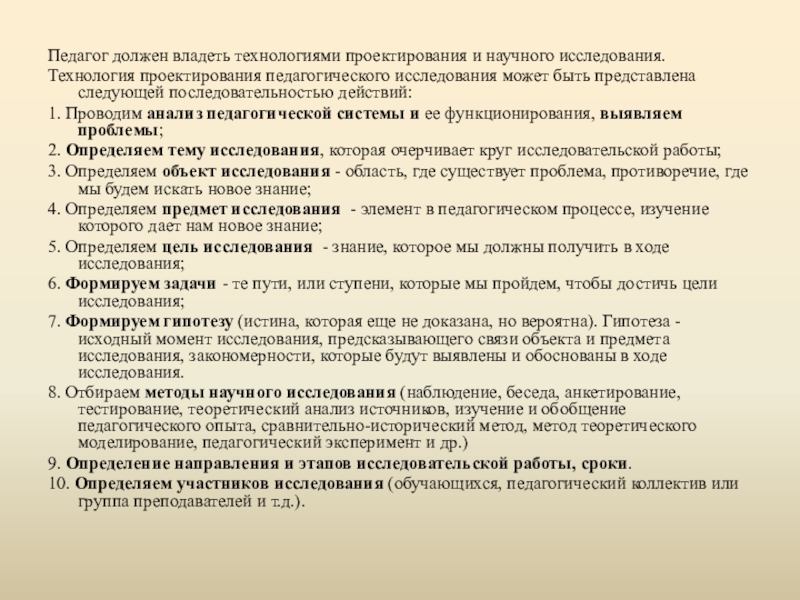 Слайд 11Педагог должен владеть технологиями проектирования и научного исследования.