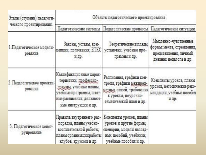 Любой педагог участвует в проектировании трех типов объектов: педагогических систем, процессов и ситуаций.