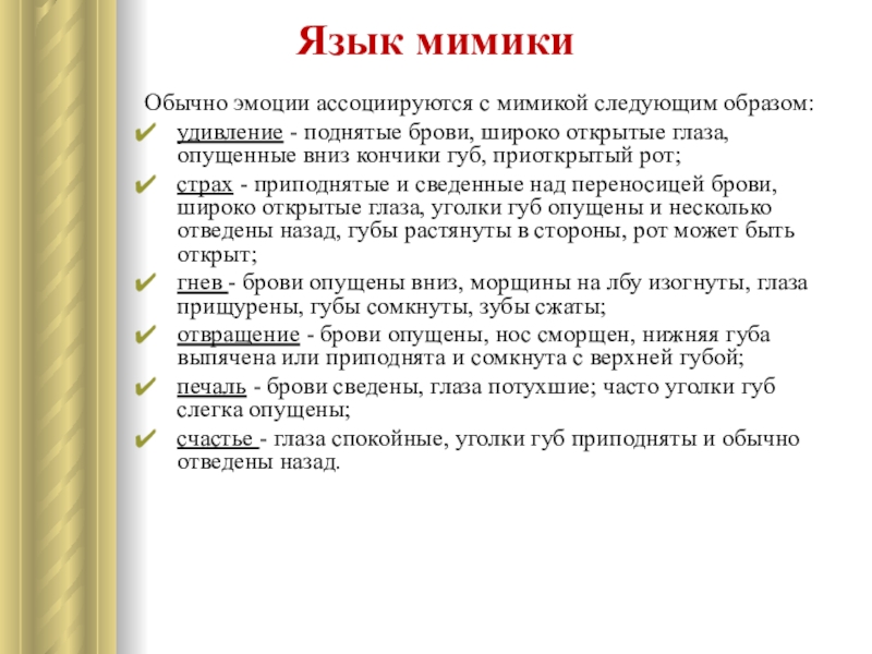 Обычно эмоции ассоциируются с мимикой следующим образом: