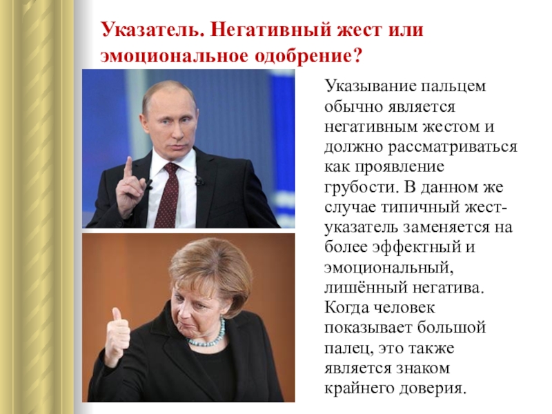 Слайд 25Указатель. Негативный жест или эмоциональное одобрение?