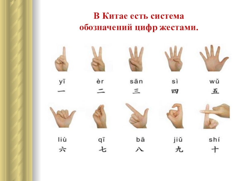 Слайд 37В Китае есть система обозначений цифр жестами.