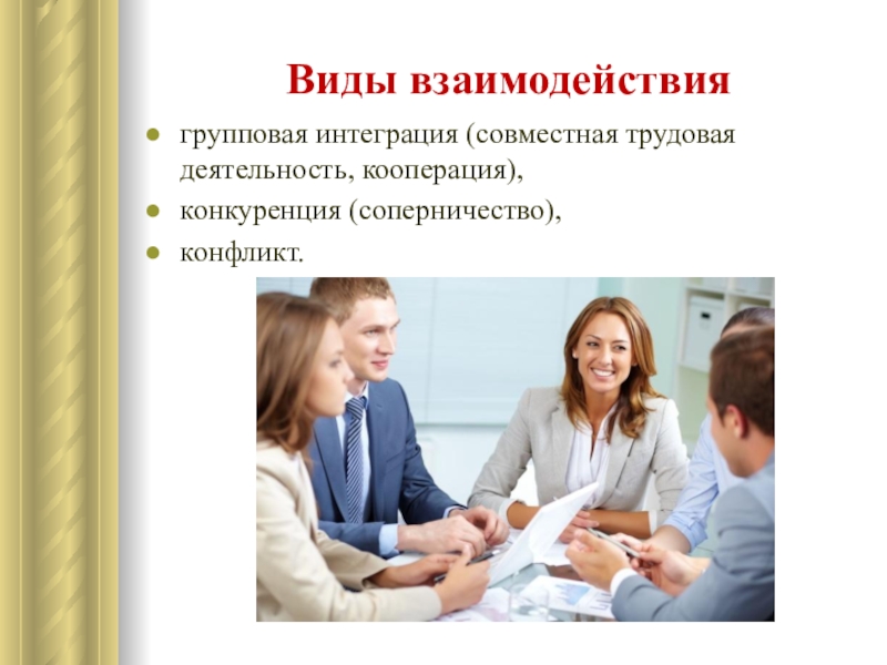 групповая интеграция (совместная трудовая деятельность, кооперация),
