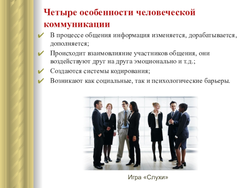 В процессе общения информация изменяется, дорабатывается, дополняется;