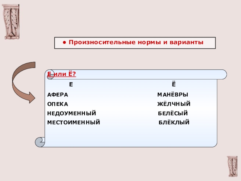Произносительные нормы и вариантыЕ или Ё?      Е