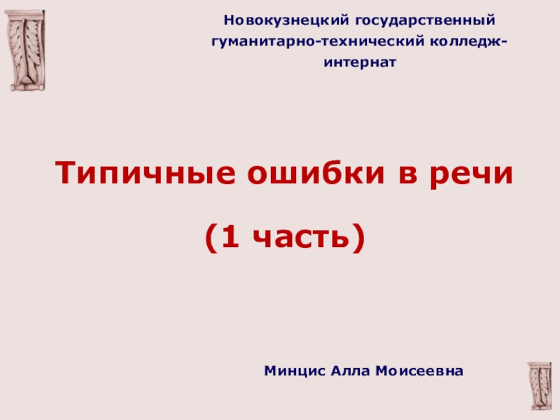 Типичные ошибки в речи(1 часть)Новокузнецкий государственный гуманитарно-технический колледж-интернатМинцис Алла Моисеевна