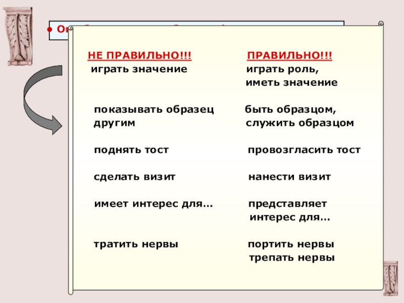 Ошибки при употреблении фразеологизмов     НЕ ПРАВИЛЬНО!!!
