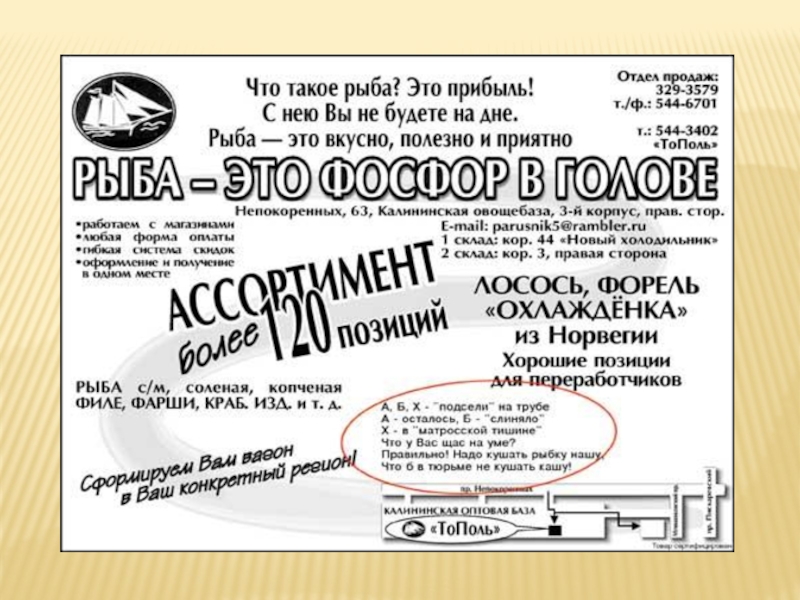 Презентация, доклад по русскому языку и культуре речи на тему Речевые ошибки в рекламе