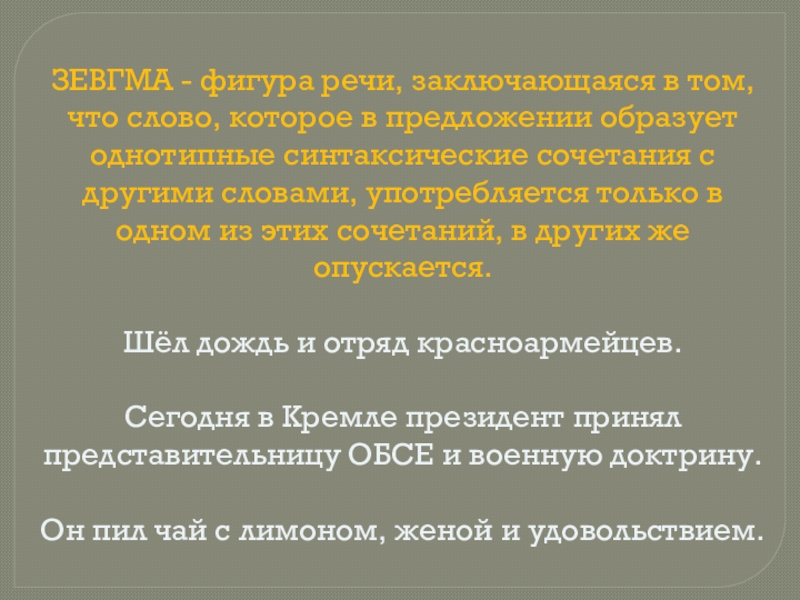 Слайд 11ЗЕВГМА - фигура речи, заключающаяся в том, что слово, которое в