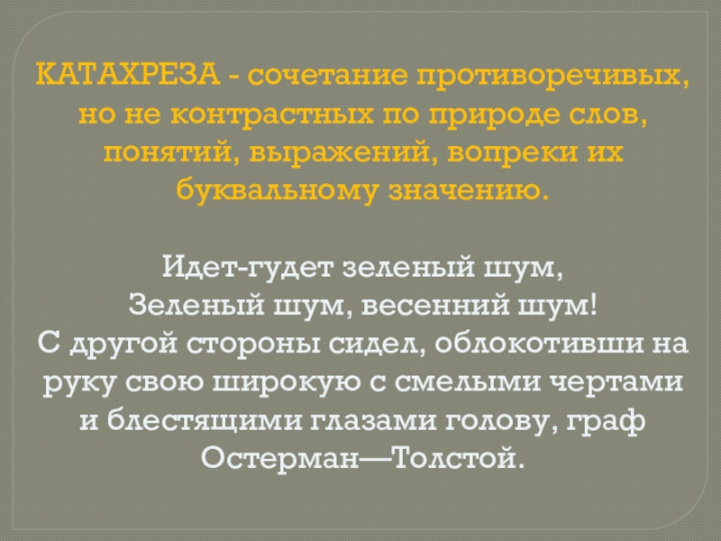 Слайд 2КАТАХРЕЗА - сочетание противоречивых, но не контрастных по природе слов, понятий,