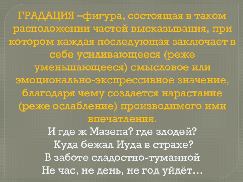 Слайд 6ГРАДАЦИЯ –фигура, состоящая в таком расположении частей высказывания, при котором каждая
