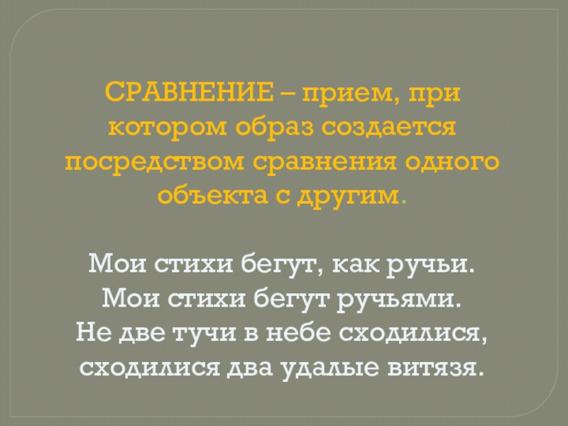 Слайд 3СРАВНЕНИЕ – прием, при котором образ создается посредством сравнения одного объекта