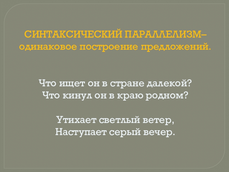 Слайд 7СИНТАКСИЧЕСКИЙ ПАРАЛЛЕЛИЗМ– одинаковое построение предложений.