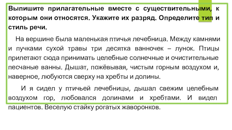 Слайд 8Выпишите прилагательные вместе с существительными, к которым они относятся. Укажите их