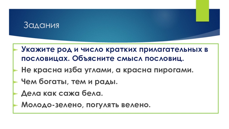 Укажите род и число кратких прилагательных в пословицах. Объясните смысл пословиц.