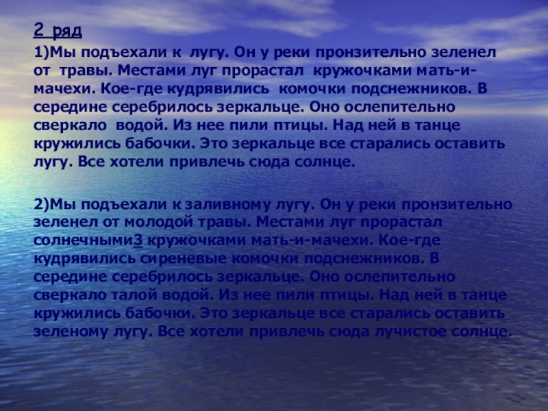 2 ряд составляет предложение со словом, подчеркивает прилагательные и определяет синтаксическую роль.