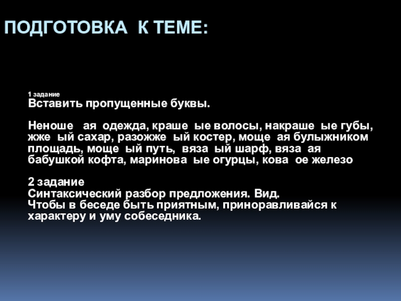 ые волосы, накраше ые губы, жже ый сахар, разожже ый костер, моще ая булыжником площадь, моще ый путь, вяза ый шарф, вяза ая бабушкой кофта, маринова ые огурцы, кова ое железо