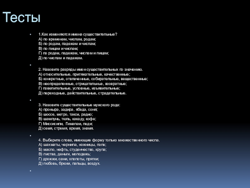 Б) конкретные, отвлеченные, собирательные, вещественные;