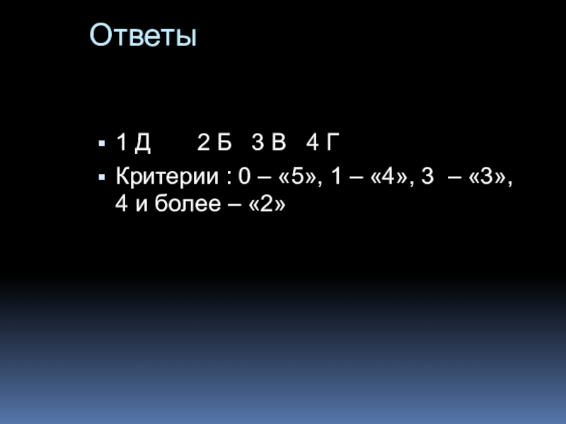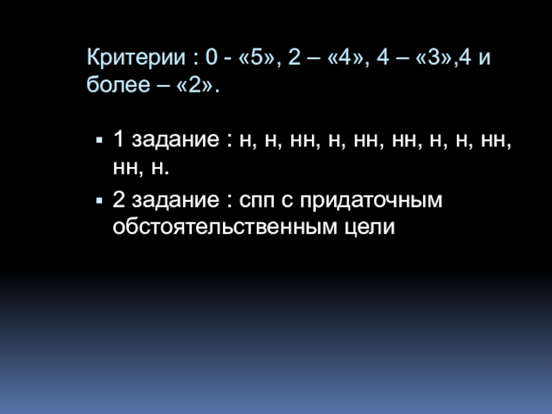 Критерии : 0 - «5», 2 – «4», 4 – «3»,4