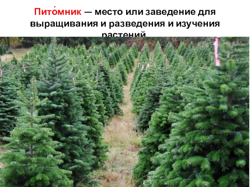 Слайд 4Пито́мник — место или заведение для выращивания и разведения и изучения растений.