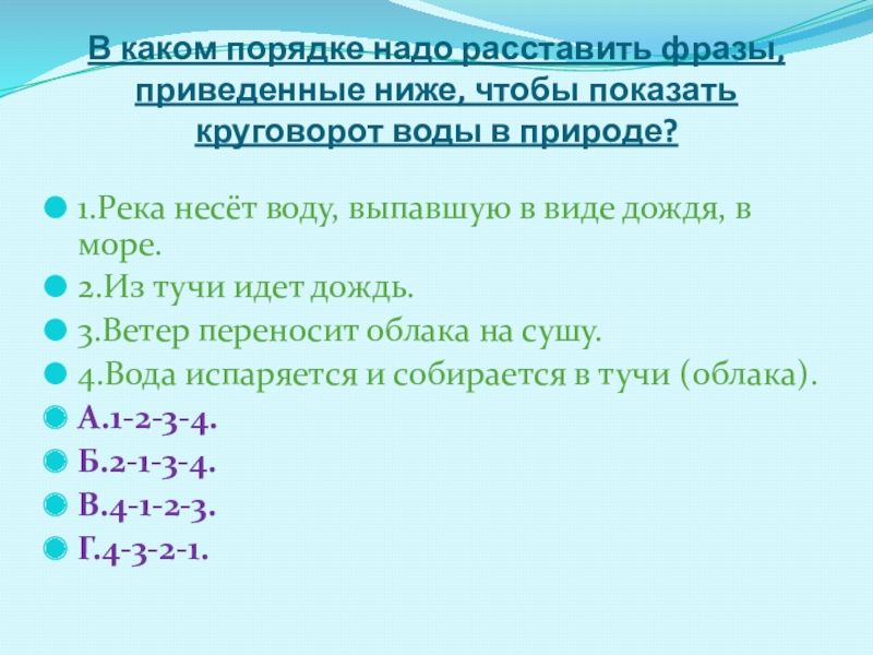 1.Река несёт воду, выпавшую в виде дождя, в море.