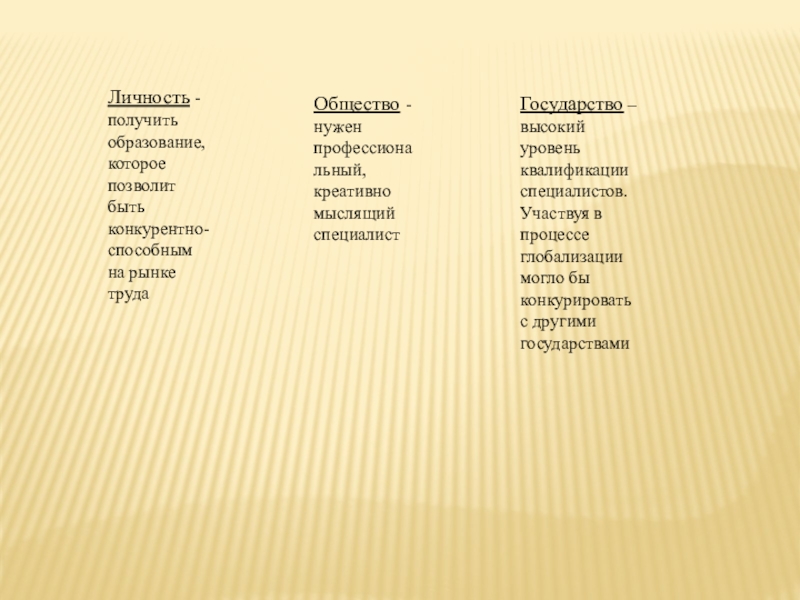 Государство – высокий уровень квалификации специалистов. Участвуя в процессе глобализации могло бы конкурировать с другими государствами