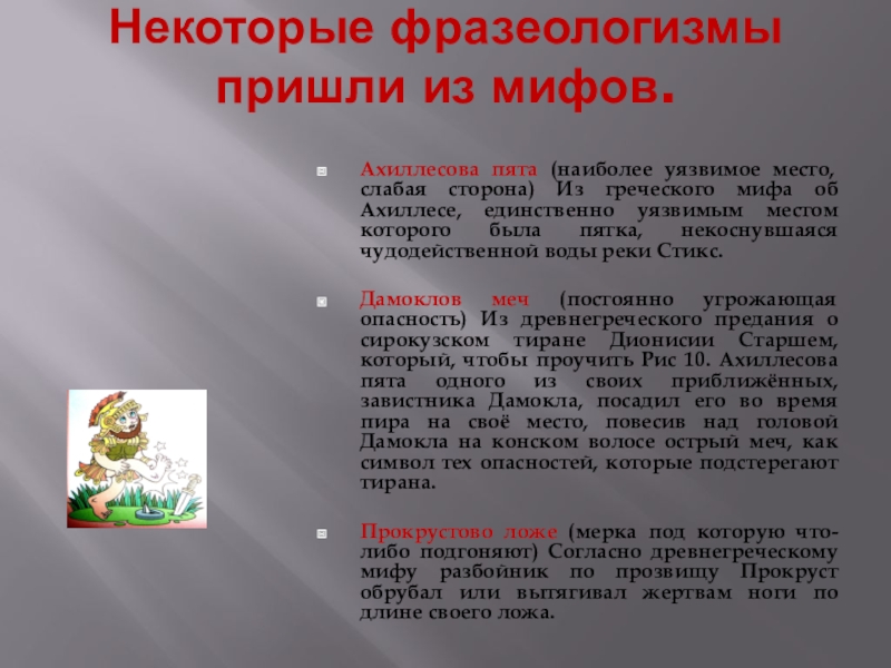 Слайд 6Некоторые фразеологизмы пришли из мифов.