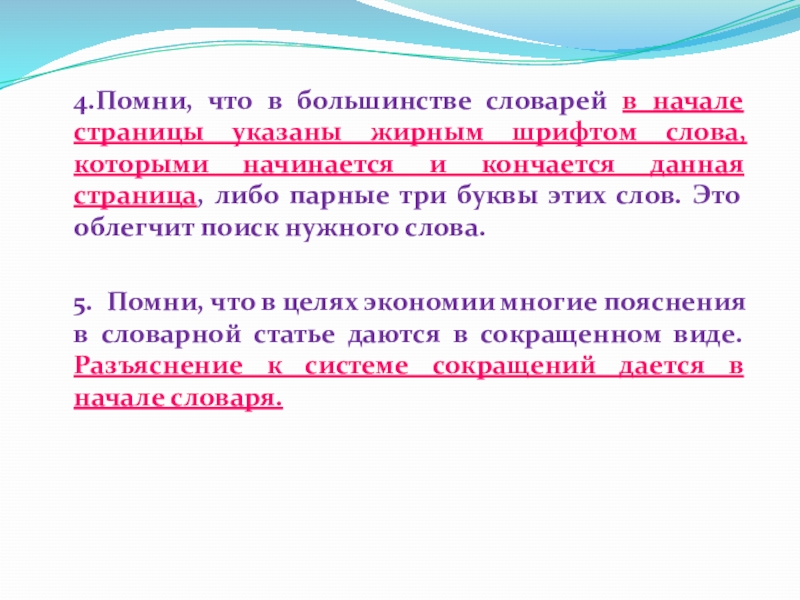 Слайд 44.Помни, что в большинстве словарей в начале страницы указаны жирным шрифтом