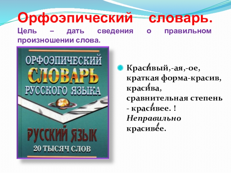 Слайд 18Красивый,-ая,-ое, краткая форма-красив, красива, сравнительная степень - красивее. !Неправильно красивее.