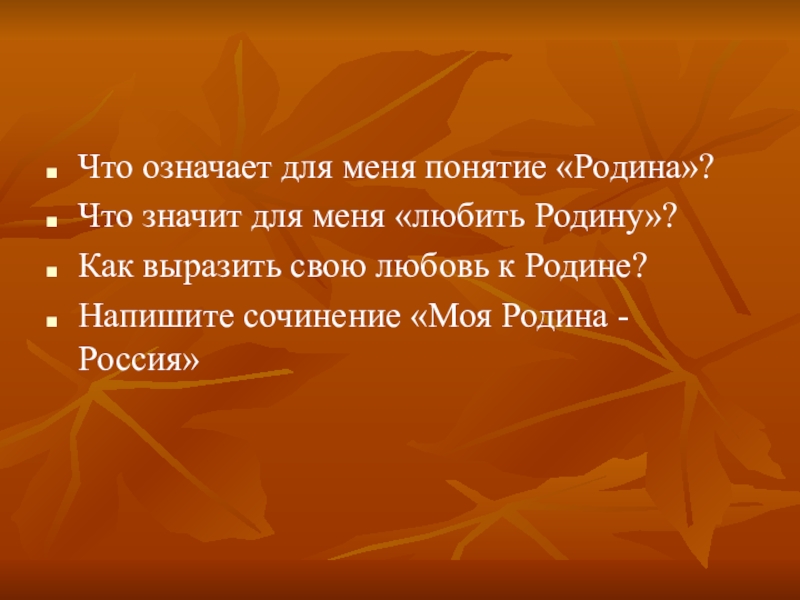 Что означает для меня понятие «Родина»?Что значит для меня «любить Родину»?Как выразить свою любовь к Родине?Напишите сочинение