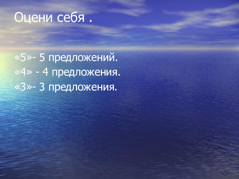 Оцени себя . «5»- 5 предложений.«4» - 4 предложения.«3»- 3 предложения.