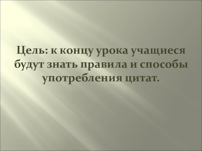 Цель: к концу урока учащиеся будут знать правила и способы употребления цитат.