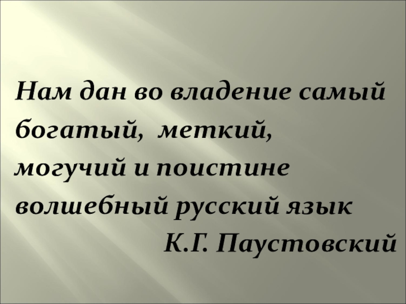 Нам дан во владение самыйбогатый, меткий, могучий и поистиневолшебный русский языкК.Г. Паустовский