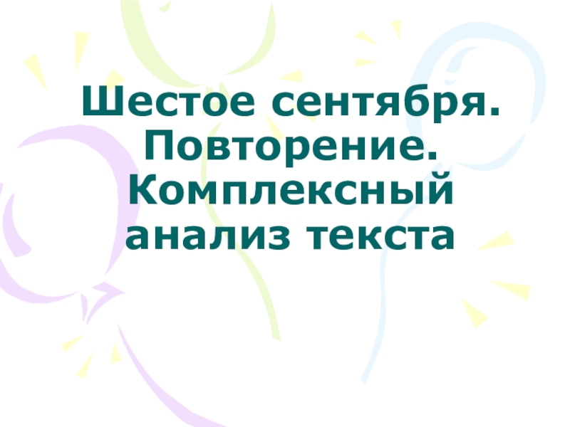 Слайд 1Шестое сентября. Повторение. Комплексный анализ текста