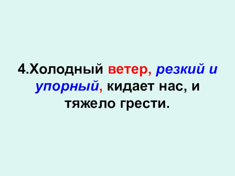Слайд 234.Холодный ветер, резкий и упорный, кидает нас, и тяжело грести.