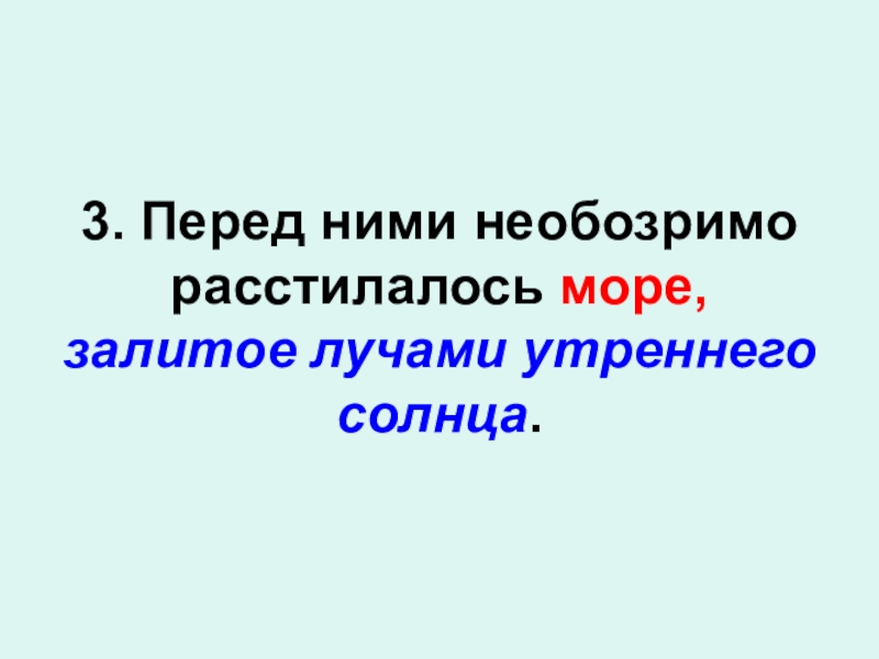 Слайд 223. Перед ними необозримо расстилалось море, залитое лучами утреннего солнца.