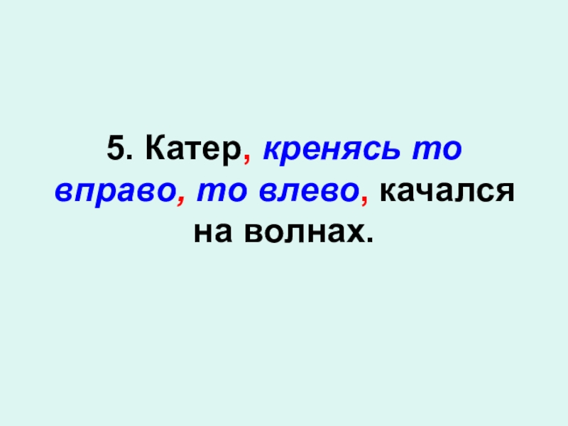 Слайд 305. Катер, кренясь то вправо, то влево, качался на волнах.