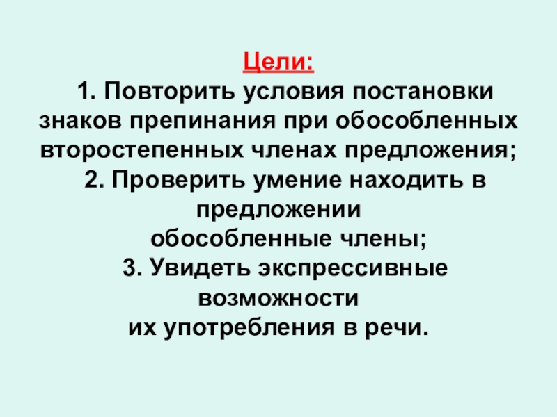 1. Повторить условия постановки знаков препинания при обособленных второстепенных