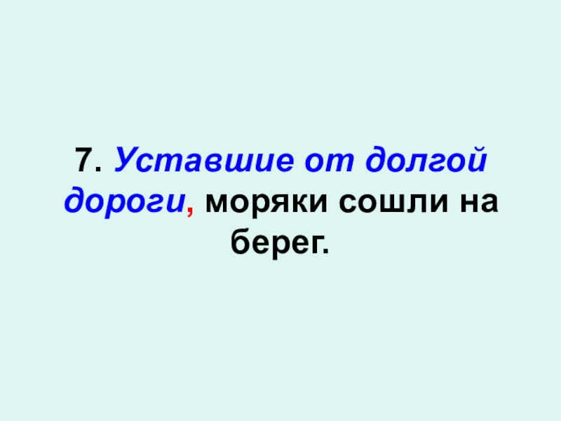 Слайд 327. Уставшие от долгой дороги, моряки сошли на берег.