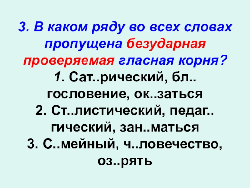 Слайд 63. В каком ряду во всех словах пропущена безударная проверяемая гласная