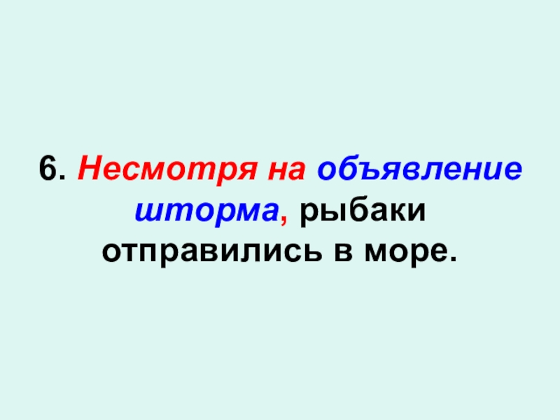 Слайд 256. Несмотря на объявление шторма, рыбаки отправились в море.