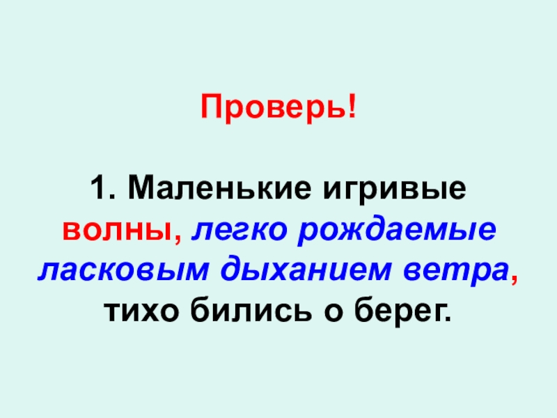 1. Маленькие игривые волны, легко рождаемые ласковым дыханием ветра, тихо бились