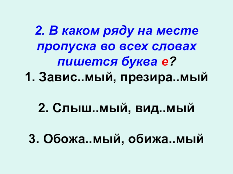 Слайд 52. В каком ряду на месте пропуска во всех словах пишется
